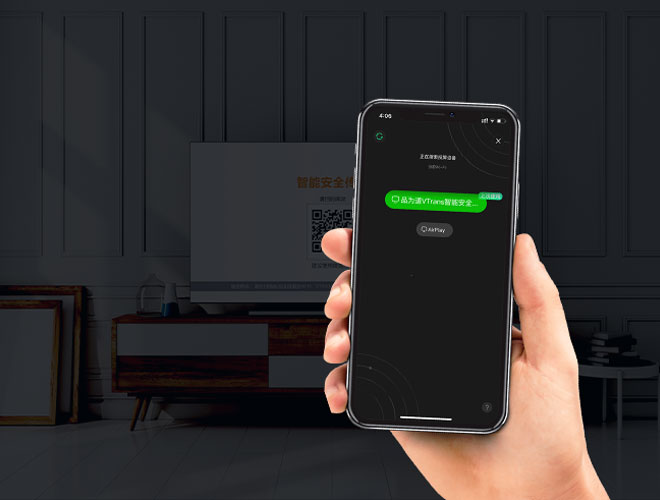 独创一对一扫码机制、VTrans私有协议机制,保障手机仅能搜到一台投屏TV端,让投屏零失误。